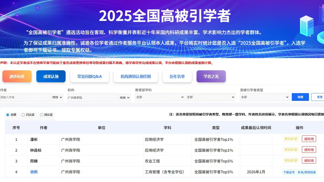 我校4位教师入选2025中国知网高被引学者榜单