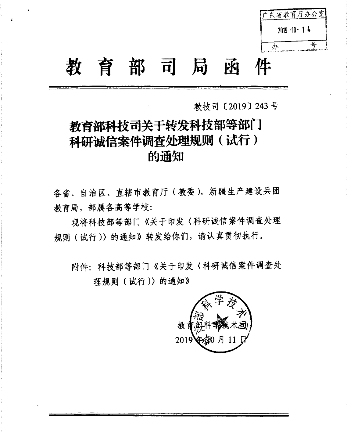 教育部科技司关于转发科技部等部门科研诚信案件调查处理规则(试行)的通知